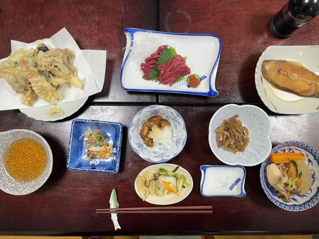 小柄で元気な女将さんがつくる、季節の地のものを中心とした、ほっとする料理が並びます。